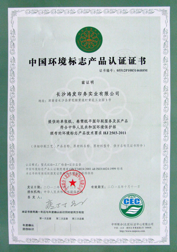 中國環(huán)境標(biāo)志產(chǎn)品認(rèn)證證書