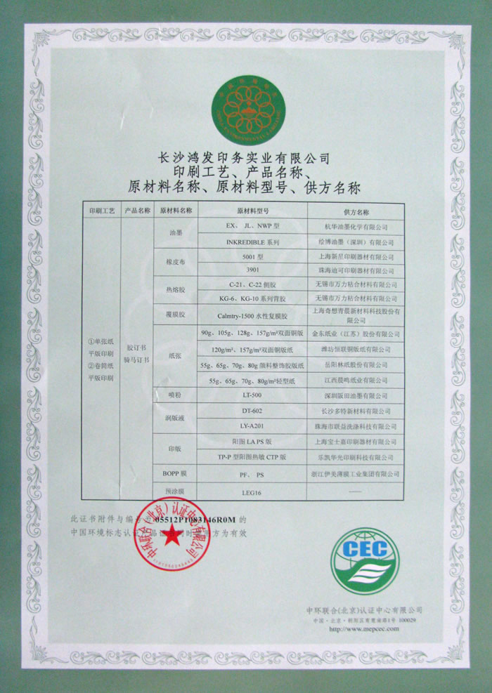 中國環(huán)境標(biāo)志產(chǎn)品認(rèn)證明細(xì)表